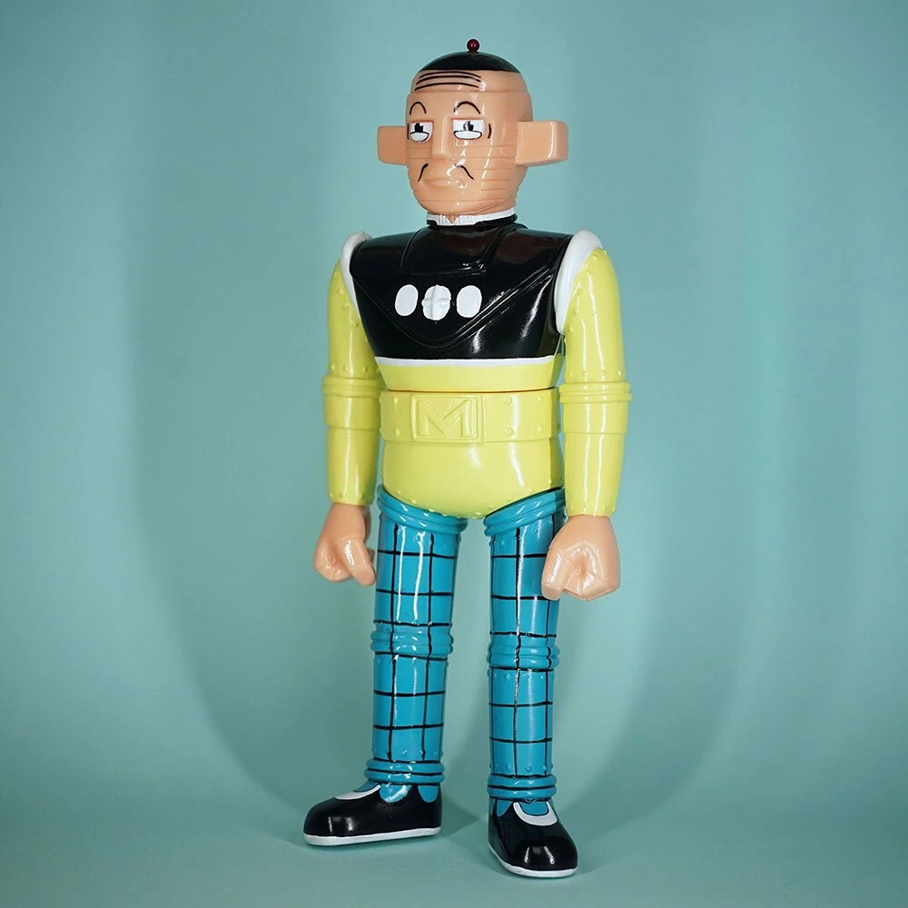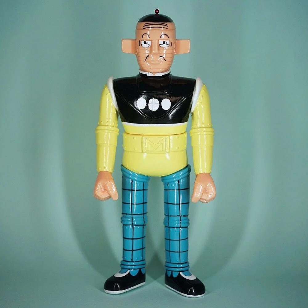 Old Master Q grew up with everyone for 55 years. He encouraged a generation of Hong Kong people to treat life with a relaxed and humorous attitude. Awesome Toy, a senior Sofubi brand from Hong Kong, is good at transforming classic works by novelty. They have brought many unusual surprises to the industry with their positive and optimistic spirit. Because of gaining the copyright of the original author, Wang Ze, Awesome Toy had an opportunity to use its hot product Fake Baron to create a new figure solemnly this time. On the one hand, the combination of the old and the little represents the inheritance of the spirit, and we can imagine that after a centenary, Old Master Q still has a sense of humor in the robot era. On the other hand, combining the nostalgic Chinglish long gown with a very modern robot setting, produced a very harmonious comedy effect.