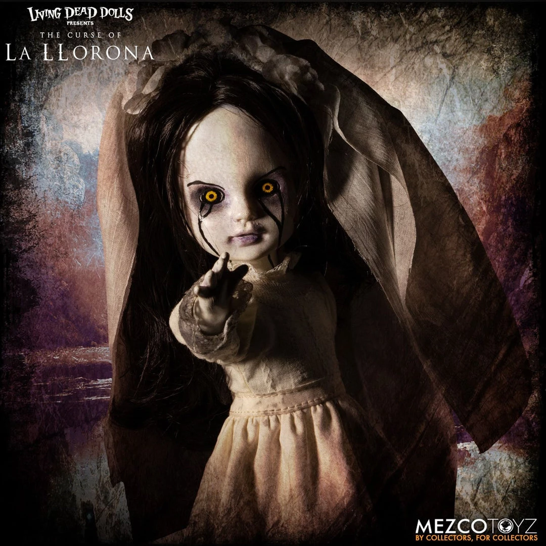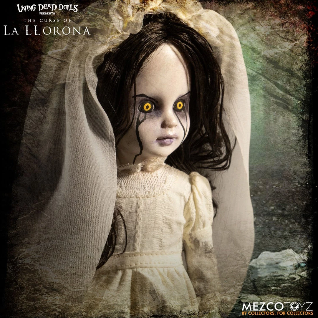 La Llorona joins the Living Dead Dolls family and wears her infamous white gown with black, curly hair peaking out from her veil. She cries black tears as she searches desperately for her children,
