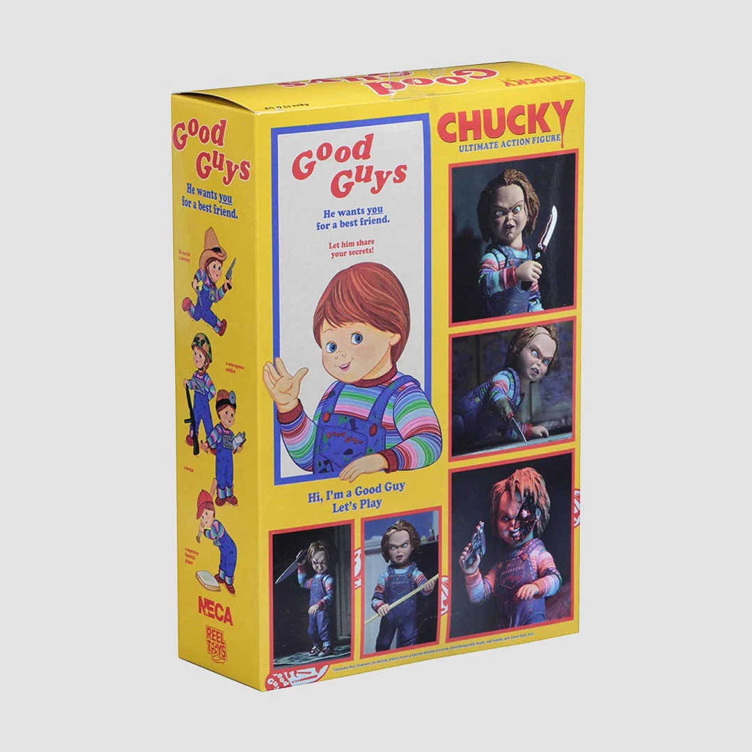 This Ultimate Chucky figure comes with a whopping four interchangeable head sculpts, and is packed with terrifying accessories:Â baseball bat, hammer, voodoo knife, hunting knife, butcher knife, straight razor, yardstick, pistol, interchangeable right forearm with blade, interchangeable hands, and more.