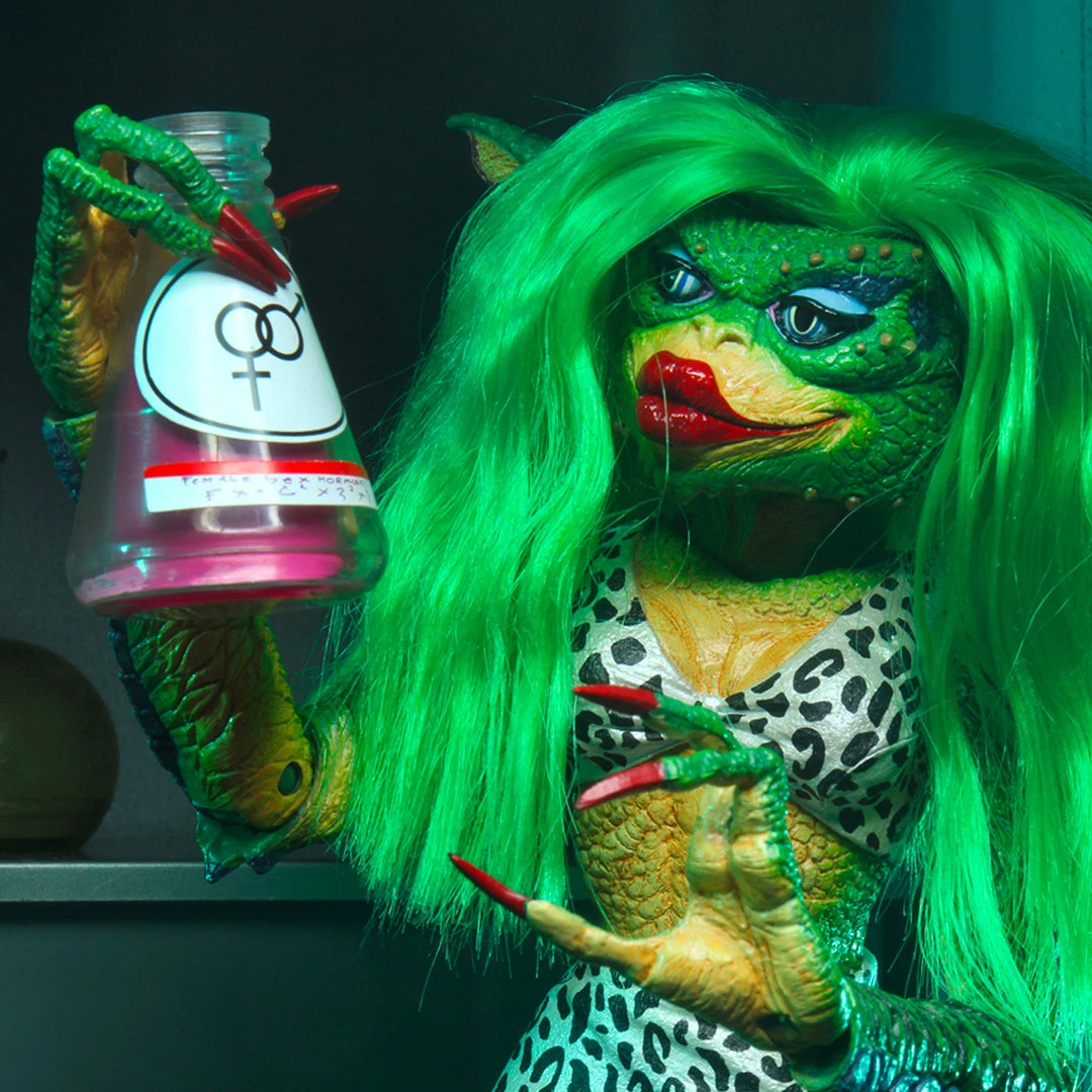 After years of waiting, the highly requested Greta Gremlin is making her debut as the first Ultimate release from Gremlins 2: The New Batch. Standing approximately 6″ tall, Greta features a new head sculpt with synthetic hair and comes with interchangeable hands, a pink boa, and the hormone potion that transformed her into the only female gremlin.