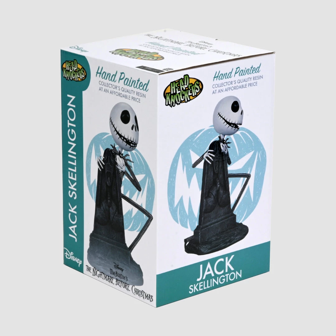 NECA’s line of Head Knockers welcomes the one and only Jack Skellington from The Nightmare Before Christmas! This frightful and delightful fellow is depicted peeking from behind a tombstone and is over 7 inches tall with bobbling head.