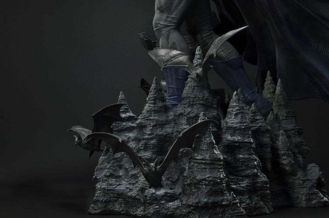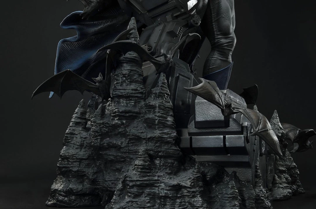 Prime 1 Studio gives us a peek inside Batman’s legendary hidden sanctuary — the Batcave! This massive display statue features Batman in his hideout, based on the “Batman: Hush” comics arc, and is loaded with incredible details like the patterned fabric on Batman’s outfit, his wildly flowing cape, and the rugged texture of the rocks at his feet. LEDs light up the computer monitor beside him, and a flock of bats on the wing add to the atmosphere! This majestic piece would be the perfect addition to your own personal Batcave — order it now!
